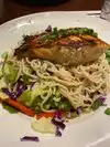My colleague and I came here for dinner as Plan B. The other resto had a 45 min wait. We were told it would be a 25 min wait so we gave our name. We saw couples walk in after us and ger seated. Turns out they had 'paged' us but clearly it wasn't working. We were sitting right in front of the hostess and it took a while for her to realize we were still waiting. We both had the salmon and it was very good. They accommodated my friend's request to change the sides. Service was good. She was very pleasant. Good music of course and they have tv screens everywhere for the sports fans.