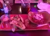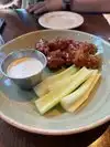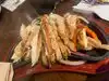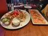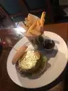 Fabulous Platter with spring rolls divided for two, calamari, fish. chicken wings, rosti's ,,brochette's with great topings, mushrooms. Great food and very good Service!!!