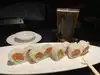 I went to this restaurant with my wife, son and daughter-in-law. Without reservation the waiting time is around one hour which is not bad. The place in a Friday night was full. Consider also they don’t have parking so took us a while to find a space some distance to this restaurant. We were seated in the Suchi bar. We were not asked for drinks but given water which was refilled during all our stay. Our orders were taken by Javier one of the sushi chefs. We enjoyed immensely his recommendations of rolls. We ate Bruce Lee, Rolls Royce, and three other ones all excellent presentation and tasty being the Bruce Lee the best. I would have love some plum wine, sake or any other drink but we enjoyed so much the experience of tasting the creations by Javier that did not mattered much. For reference this happened 7:45pm 10 May 2019