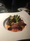 Went for supper with a group of 8 and every single one of us were extremely happy with our dinner. I have only praises on the service and food. My only negative thing was that our table was located by the door going to the outdoor patio and we had a good cold draft. Below is what i ordered. Sea Bass Truffle Nigiri Sea bass, torched garlic, truffle oil, black sea salt Unwritten Law-bacore seared albacore sashimi, garlic, jalapeno, sautéed in ponzu Lightning Roll shrimp tempura spicy tuna topped with black cod seared tuna avocado, faux-nagi sauce, rayu Rollz Royce shrimp tempura, asparagus, topped with tuna sashimi, jalapeno, money sauce, hand seared garlic, ponzu, faux-nagi sauce
