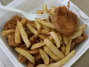 Perhaps I am more picky about fried chicken and fish but I found the catfish and the chicken both a bit overdone and too greasy. Ditto for the French fries.Banana pudding tasted like something prepackaged from a supermarket, very unimpressive. The one good thing was the hush puppies they were nicely flavored and very tasty.