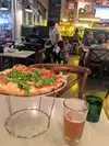 A very fresh and tasty pizza. Baked in a stone oven. Very welcoming staff. Nice environment overall.