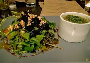 Lots of good options for vegans. Some tasty dishes on the menu here such as the Grilled Watermelon Ginger lime leaf and also the Morel Mushrooms stuffed with cumin cashews and cheese.