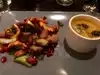Based on raves from friends we finally had a chance to go, since they secured four hard to score seats at the last moment. As the diners get seated and settled in the chef/owner comes out to explain, in great detail, what you are about to eat. The autumnal menu started out well, with a pumpkin bisque (Course 1) and mixed salad (Course 2) of smoked carrots, apples, raisins and bok choy, which was fresh tasting though a bit confusing with the various flavors, like ginger, in the dressing. The third Course and fourth Course added to the confusion by the addition of so many ingredients that it was difficult to tell then apart. The cashew cheese souffle was not the light airy creation expected and the lemongrass scented baby gold potatoes lost the lemongrass under the weight of the fennel, mushrooms, delicata squash, garlic, chives, etc that was on the same plate. By the fifth Course, the diner has had at least three times the amount of vegetables as is recommended. But the fifth was quite good, finishing with a huckleberry mousse, something never had before, so it and the flourless cookie were relished. The wine pairings were inspired and the waitstaff very attentive.
