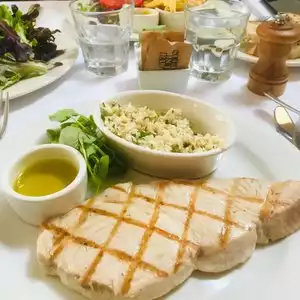We had dinner on a Thursday night - after any performances had started to the restaurant was only about half full. We had a great meal - in summary good, fresh, relatively simple food cooked well. The salads were nice and fresh and well made (not over dressed) and the grilled fish was well cooked. It came with a sauce on the side but was better by itself. The wine selection seemed reasonably priced and the bottle we had was good and went well with the food. The service was excellent - the waiter there when needed and providing good assistance, but without being over bearing. If I was a local I think I would be a regular guest.