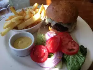 I might say this place is hust perfect for business lunch. Not plain, not rich. Nice service and good honest food. The fish was good and a big portion. I had to ask to wrap the rest. Apparently they have one of the best burger around according to my frienda who were having burgers and fries.