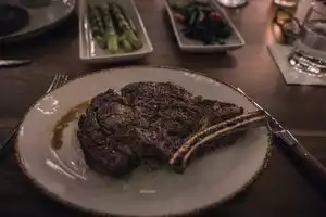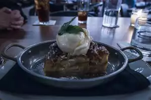 My wife and I were staying the night at The Domain, and knew that Haywire had recently opened, so we decided to book a table for the evening. On entry it’s obvious there’s a heavy Western theme. There’s cow hide on the chairs, some of the servers were in cowboy hats and wranglers, longhorn’s hung on the wall…the whole nine. The unusual thing about the décor, is that there’s also shelves holding bits of old technology, books and toys. The external black brick and shaded yellow accent lights is a color theme I like a lot….looks very slick. The overall look is slick, with a casual yet stylistic atmosphere with nice mood lighting. Anyways, on to the food! We started with the Crispy Pork Belly Bites…they were good. The sweet honey glaze, pickled fresnos and charred mandarins give it a sweet, tasty and smoky flavor. For my main, I had the bone-in cowboy ribeye with charred broccolini. I asked for medium rare, but it came out more medium and I wasn’t that keen on the broccolini. My wife went with the petite filet and tallow fries….the fries were really nice. We used to cook our “chips” in beef dripping back in the day as a kid in England, which is essentially what beef tallow is. I finished off with the Whiskey Bread Pudding, which is made with crossiants and topped with caramel sauce, cinnamon sugar and a scoop of vanilla ice cream. VERY NICE!!! Everything is sourced locally, too. Service was fast and friendly, so I can’t fault them there either. It’s not cheap, though. Price-wise, it’s between Paul Martin’s and Perry’s Steakhouse. Overall, we enjoyed our time there and will be back again.