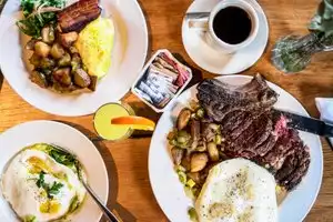 If you are staying in Uptown and want a brunch spot, this might be worth trying. Parking garage a few steps away the validates parking when you come here (parking is typical big city, hard to find, easy to miss the public spots, etc) * We started with the Mini Elk Tacos and flavor house it is! Never had Elk before but nothing weird to it at all. For mains, we choose the Wagyu Pastrami Hash and the Crabcakes Benedict. Hash was nice and filling and the pastrami was perfect. The Benedict was my favorite flavor but mine had shells in every bite. It happens, not mad about it but that's the only reason this review was not a solid 5 of 5 stars. I'd order it again * Now, we mustn't forget about the cocktail right? The Judd and the Haywire were very nice selections if you like Old Fashioned's. I also tried the Texas Mule and that was my favorite. Will def be taking the jalapeño ingredient idea back home with me * Service at vibe we're awesome. Tastefully decorated and fast service all around. Plenty of space to pick seating from the bar, dining room or the outdoor patio. They even had a little camper setup with a table inside for those cute "do it for the gram" moments. Recommend checking it out if you are in town
