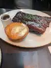 My husband and I had dinner here while on vacation. The decor is very “Dallas” if that makes sense to you. We reserved a table in the climate-controlled patio, which was a great choice. You get the city views while inside the cozy restaurant. Our server Pernod (forgive me if I’m butchering his name) was great, very attentive. And I can’t forget the pretty hostess that offered to take our picture (I didn’t get her name but we were there 10/27/25 if that helps and she wore black leather leggings and a red/black/tan flannel shirt, with longish black hair). The food was amazing! I got the ribeye with tallow fries and my husband had the ribs with mac & cheese and cornbread. When I say all of it was good, I mean EVERYTHING was cooked just right-the steak was juicy and flavorful, the fries were hot with the right crisp balance, mac & cheese was creamy and seasoned, and the ribs were perfection! And the cornbread…I’m not even big on sweet cornbread but this here tasted like something from a deep south granny’s kitchen! I also had a classic margarita that was very well made, not too sweet or overwhelming. If you’re in the area, please check them out-great choice for date night. We will be back on our next trip to Dallas.