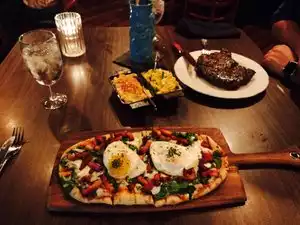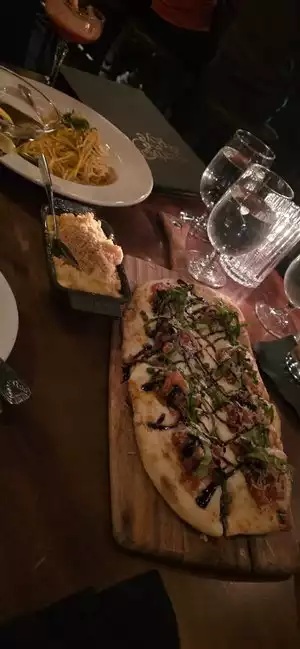 Pleasant overall experience,however, we received the incorrect flatbread orde, the pasta was good, the mac & cheese was a little too salty and the cocktails were average for Vegas, nothing outstanding, just standard. More of a bar scene/vibe. The sister restaurant provides more of a classy feel. Our server seemed distracted and placed the wrong item for our order and forgot to bring a garnishment for a cocktail ordered. Fun but a little disappointing experience from what was expected.