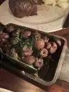 A real find (thanks Eater) that turned into one of my favorite restaurant experiences. It is off the strip in a very “interesting” area. We were a group of 8 and got there with a friend early. The bar was very crowded but had a great, speakeasy vibe. The bartender forgot our order but when I asked again he insisted on comping us the drinks (I tried hard to pay). Started with sharing the beef tartare and meatballs with a colleague. The tartare was good but the meatballs were incredible, 4 huge meatballs but incredibly (ordered them only because we saw them at the bar). Possibly the best meatballs ever. For a main, had the fillet Oscar style. Steak cooked perfectly, ample crab and asparagus. We shared several sides, the sweet potato tots were most memorable (I don’t eat regular potato so great option for me), Brussels sprouts very tasty, asparagus was excellent. Normally don’t order desserts but we did try the platter and it was also great, especially the warm cookie and the homemade donuts. Our waitress was fantastic, even comped us some shots (fernet branca, definitely an acquired taste). THe meal and service were great, but I really liked the atmosphere, it felt very real for a Vegas restaurant, prices not cheap but not Strip, just a fantastic experience.