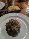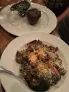 Very busy place. Make sure to make reservations. Parking is a hard to find. It us VERY dark inside. My wife needed a flashlight to read the menu, and from what I saw, she was not alone. Portions are large. We split a Caesar salad and it was still more than enough. We had ribeye steaks, and could have shared one as well. Not the best I have ever had, but good. Wish I would had ordered it without the house rub. Pretty spicey hot. The macaroni and cheese was yummy. Prices are still on the high side, even during the half off happy hour. Would recommend it, just not sure I'd go back again.