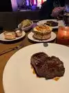 Treated ourselves to a steak dinner and we weren't disappointed. We had the bone in rib eye and it was cooked perfectly. So delicious. We ordered two sides...the asparagus and the fingerling potatoes....the sides are large....we couldn't finish them. We also shared a salad....I mean, the salad itself could be a meal. While the food was delicious, the best part of the meal was the service. We had four or five people serving us and we cannot say enough about the quality of the service. All were so professional, so friendly, so helpful...never overbearing or intrusive. But my water glass was always filled, the wine glasses topped up, and all done with a smile. Somehow, we found room for a dessert...the caramel monkey bread....I wanted to pick the plate up afterwards and lick off the remaining sauce. Nice ending to a great meal.