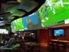 A sports bar/restaurant more televisions than a person can watch, a very large "wavey" projection screens above the bar. Great "bar" food