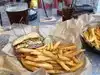 Not sure where they got the day old fried food from, or why they think it is acceptable to charge upscale prices for leather that is inedible. Stay away from the chicken fingers at all costs.