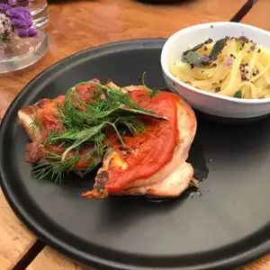 We really enjoyed our lunch here. The service was very good, as was the fresh food. Everything was beautifully presented, and we were able to pair the food with wine or freshly-pressed juices. The outdoor area can get warm, but the space is beautiful.
