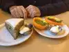 What a great way to start the day ! Especially loved the rhubarb and coffee cake . Great service too !