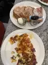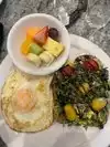 I ordered a veggie omelette with banana walnut muffins. The muffins are served warm! I also asked for a side of fruit for $1 and it was the perfect size fruit cup that I wanted. The omelette came out so fast. Highly recommend for breakfast/brunch.