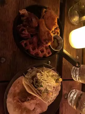 In NYC on a Sunday for lunch before a 2pm show. Saw good reviews, decided to check it out. Excellent brunch menu - and anytime of day menu. Our table enjoyed a chicken sandwich, chicken and waffles and Chilaquiles. Had a number of cocktails and an IPA and all excellent. Great atmosphere and vibe. Star of the day was Charlie, our server. From menu suggestions to light conversation, made our experience at Hold Fast a great one. We will be back before our next show.