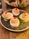 We hate a 1 pm reservation here before a matinee show on a Sunday. We were seated inside at a very small table. Our waitress Liz came over to get our drink orders. You use your phone to scan the QR code on the table to access the menu. We ordered two bloody marys which were very good and only $7 ea which is great for NYC. We decided to share 3 appetizers, the wings, deviled eggs and cerviche. They all arrived pretty quickly and look amazing. We had to remove the items from the table to make room for the food. The deviled eggs were very creamy. The cerviche was very small with just 6 shrimp with chips, but with a $10 price tag was ok. The wings had a dry rub on them and some kind of sauce drizzled over them in the kitchen. They were unlike any we have had before but were delicious. All in all, this was a good restaurant.