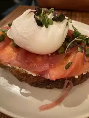 Was looking for a breakfast place close to our hotel and this one had great recommendations. When we arrived, there wasn't a wait and got sat right away towards the back of the restaurant. Our server was really nice, and she was funny when brining our drinks and there was a slight spill. We joked that we needed $0.13 taken off the bill for this and she joked back with us. Ordered coffee, espresso and mimosas along with Smoked Salmon Lox Toast & Avocado Smash with a side of bacon. Neither disappointed and, both were the right amount of food to not be stuffed buy satisfied. They have a pretty extensive brunch menu for weekends and if I lived closer would definitely come back to try other items....particularly the Bloody Mary.
