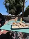 Delicious tacos. I had chicken. We shared potatoes and cheese dip. Water is available. We sat outside on a nice evening. I recommend for tasty tacos!