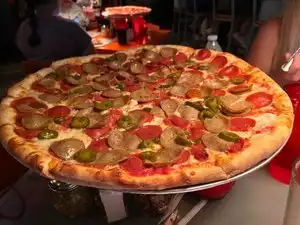 Fun local experience. Great tasting pizza, huge slices, good prices. Nice overall place and I would highly recommend if you like pizza to check it out. I was told but a local hotel to check it out and I am glad I did!