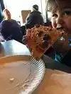 Food was just like we remembered . Fast and very yummy. We got snakes( garlic knots) and pepperoni slices. Love the crust. Can’t wait to go back