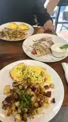 The wife and I decided to try this place out for breakfast. The menu is a little overwhelming but that means you can find just about anything for a group. The place is a good spot to enjoy a meal but not be wowed. Food was okay. The Mrs ordered the North Beach crepe. A bit dry and overall she said the mix of flavors was good. My personal thoughts are it was plain Jane. I had the chorizo scramble. This was tasty. And we both loved the potatoes as a side. The sweet crepe was a total disappointment. Baklava crepe...don’t bother. Also noticed a few other patrons who voiced, “this wasn’t what I expected” and didn’t fully enjoy their meals either. A promising start was due to a great menu, fair food, and a disappointment in our sweet crepe. In all it’s worth a shot but we likely won’t go back.