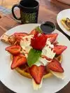 Ate here on Sunday morning after seeing reviews. Food was delicious. I had the seasonal pecan and banana pancakes. Pecans were like a brittle. Others had waffles which were light and topped with fruit and cream. Get here early as there was a line out the door by the time we were half way through our meal. Order at the counter then get your table. Food comes out very fast. Definitely recommend this place for selection and quality of food.
