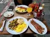 Very busy place preparing typical American breakfast. Quite fast but prepare for a long queue. I suggest you try the 2-2 and 2 see picture