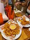 Had a grilled chicken sandwich. It was OK, too watery, not sure why. Onion rings were crispy and good. Server, behind the bar, was professional and friendly. Took a picture with the servers as a revenge photo, my ex-wife always had a fit whenever I mentioned Hooters. The server, Laura, is what I expected of a beautiful Hooters waitress, the other one, not so much.