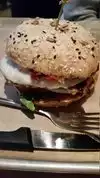 Heard all about the impossible burger ... wanted to try a ALL veggie protein burger which mirrored meat, none of the cholesterol... and wonderful for the environment... must admit, amazing! Taste 10, bite 8, filling 10 ... service, slow for lunch 5 ... but amazing fresh baked bun, fries lemonade ... also tried juicy and flavorful turkey burger too!