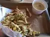 Good casual restaurant. You are assigned a table number on arrival, step up to the counter to order, then find your table and wait for the food to be delivered. The food was delivered quickly, was hot and very good. Burgers were cooked to order and were juicy. These are not large burgers, but are filling. A large order of Fries means "very" large and probably too many for a single person. There is a bar menu which serves craft and conventional beers, plus other alcoholic drinks. Non alcoholic drinks are also available from the usual drinks dispenser.