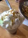 If you like standing in line for nearly 30 minutes for an overpriced, half cooked, tiny hamburger (think slider burger size), PLUS sit at a table where the people in line are bumping your table non-stop, then this is your place! My banana foster shake (small $5) was pretty good, but half the cup was whip cream topping, not good! One and done with this place. Much better food, prices and service elsewhere in SA!