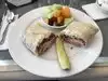 In town for a visit I ate there 2 nights in a row. Pastrami on rye 👍🏻 And fish and chips the next night. 👌🏻 It’s attached to a Ford dealer showroom. Wait staff was on point and attentive. Chefs cook up some good food.