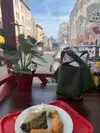 The lady making my plate was very patient with me. You can pick out exactly which items you want. It is possible to try one of everything. I liked the pork dumpling best. She recommended the sesame ball and it was really good. I highly recommend a meal here and would come back if Iām ever in San Fran again. Tables for sitting outside on a nice day as well.