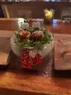 We were welcomed by Nicky who was really great to us the whole time and made us feel at home. She wrote our names on little place cards and took pictures for us. We were alone that night and we were cared for very carefully, the atmosphere was beautiful and romantic. Lovely Christmas decorations too! Then we got our courses and we were shocked by how good the mix of flavors was. The chef is amazing at what he does and it was very interesting to hear his explanation about how he made each course. It was fun that he made us guess what we had eaten and we mostly had no idea! The wine was great, as well as the welcome cocktail served in very original glasses. Thank you so much for the experience:)