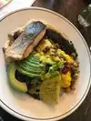 A gem of a find in West Village, this cozy little cafe has a fantastic menu, a full bar, espresso coffee and fresh squeezed juices. It felt like a neighborhood favorite as people meandered in, ate and lingered to visit. The menu had a number of good salad selections that tempted me. I chose a wild rice bowl with hummus, marinated chick peas, lentils, avocado, marinated cauliflower and lettuce. I added a small piece of salmon. It was a perfect lunch with lots of neighborhood comings and goings to entertain us through the windows. The service was friendly and the food came quickly. Tip: The kitchen closes at 3:00 for lunch.