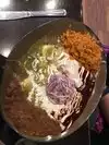 The photo is the inside of a 19.00 chicken chimichanga. It consists of around 30% boiled chicken. And 70% of this overcooked rice and bean throw up. A gelatinous mass with no particular flavor or texture. It smells and tastes like it looks......terrible. we have really good Mexican restaurants back home so maybe im not used to this.. This stuff is barely palatable. It has this taste of oversalted, over cooked Asian pot luck stuffed into a barely fried burrito. The food my family ate was much better (quessadilla). Atmosphere is loud.....very loud.