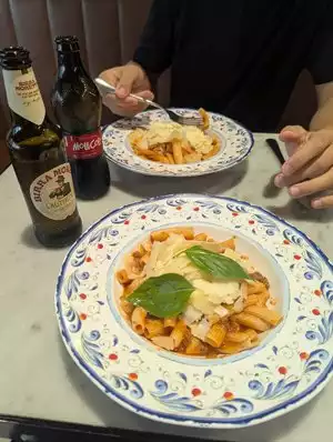 Very tasty, comforting, home made italian food 👍 Cosy, modern with a twist, environment👍 In a touristic spot but not at all food for tourists Choose the stools by the window, watching the people go by, nice passatiempo. All over experience, Grazie!