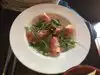 Er had al lovely dish of chicken in Italiaan sauce. Nice service . Very food food. Service was very kind and fast. People were enjoying themselves. It was a very lovely evening all together.