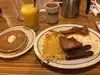 My wife and I arrived at 4 am was at a table at 4:10 am which didn’t take long and the food was amazing we ordered the breakfast sampler with strawberry banana pancakes and a pitcher of organge juice we had a great server sadly I can not remember her name but she was amazing she satisfied every need and was working mainly by herself busting at least 10 tables but she up kept it so thank you again mam I would definitely recommend eating there it’s a great environment for friends, family, or just breakfast