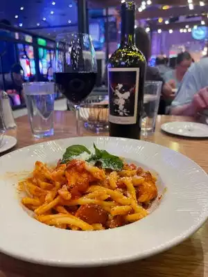 I had the meal shown in the picture. It was ok. A bit spicy for me but it was ok. It honestly upset my stomach. My husband had the steak. Our waiter was very nice and offered suggestions. It offered the slight Italian feel I was looking for. The only issue I had was finding the place. It is not easy. I had to call all over just to locate it. I don't like how these places are so hidden inside the hotels and casinos. I suggest adding the location with reservations just in case.