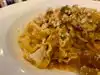 We had never eaten dinner only breakfast here. It was so rich and filling. Service was perfect. We both walked away very full. I had the Conchiglie Norcina con Pollo - very rich. My husband had the lasagna - served piping hot! Tip - don't fill up on the delicious bread brought to your table before dinner is served! It's tempting but leave room for your dinner!