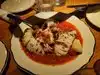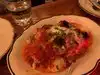 We had the meatballs and calamari as a starter. The calamari where a bit chewy but the meatballs were good. As a main course I had the Spaghetti carbonara, which was OK but not amazing. For the wine we had a bottle of red which was not worth the money we paid. Overall average.