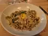 Loved the ambiance and the location. Parking instructions could be more clear. But we overall had a good dinner. Started with the polpette, then I had the tagliatelle, while my wife enjoyed her bucatini. The tagliatelle just seemed like it needed more flavor, but portion size was good enough. Drinks were good as well. Also, our server was sweet, but she could've checked on us slightly more frequently. But I'd come back. Menu is short, but executed well.