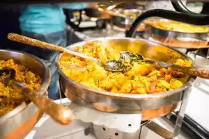 The lunch spread is very elaborate. You have lots of options both veg and non veg. Naan and tandoori chicken are served hot on the table. My suggestion is keep some place for the dessert too. the food is great and I loved it.