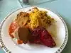 India Palace is a small restaurant on University Avenue in a shopping mall. Almost all the waiters and the cook are all from the same town close to Jullundar in Punjab, India, and most restaurateurs in US are from this area. The food you get is usually very authentic. Unfortunately that was not the case for us. We ordered Onion Bhaji (onion fritters deep fried), aloo-gobhi (potatoes and cauliflower), dhal, yogurt, roti and carrot halwa (dessert). The onion bhaji almost tasted like onion rings without the gentle spicing of the Indian type. The aloo-gobhi did not have an authentic sauce and had no resemblance to the genuine stuff. Our worst experience was with the carrot halwa. This dish takes a long time to cook and cannot be made instantly. Ours tasted like some cooked carrots in hot milk with sugar! We returned the dish and they took it back without a fuss. The service is quite good. We noticed a large number of local clientale and perhaps the food is geared towards them. Our dishes, ordered medium spiced, turned out to be quite hot.