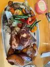 The family order is huge. A whole chicke with side dishes. Love the fry banana. Clean restaurant with nice friendly service. Will be back.